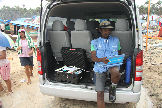 Within a few days of Typhoon Yolanda’s collision with the Philippines, UNICEF organized a team to deploy RapidFTR (Family Tracing and Reunification system) as part of the Child Protection programme’s efforts to speed up the process of identifying children separated from their primary caregivers and reuniting them with their families. The team includes the Innovations in Emergency Lead from HQ in New York, Mac Glovinsky; RapidFTR Technical Project Coordinator based in the UNICEF Uganda office, Cary McCormick; and two employees of Thoughtworks from India, Sri “Batman” Prasanna and Subhas Dandapani. Thoughtworks has been supporting the development of RapidFTR for the past three years, and offered two of their colleagues with RapidFTR experience to the UNICEF emergency response free-of-charge.
