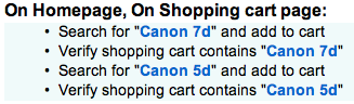Similarly, to verify items are added to shopping cart, “before hook” ensures you are on the shopping cart page before the verification code is executed.