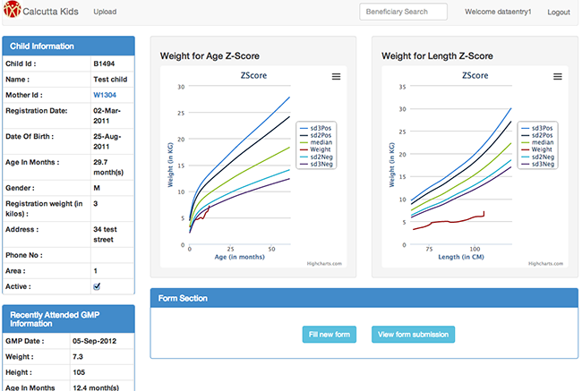 Phase1 of this project was delivered in January 2014. It dealt with a majority of the above issues by providing data security, giving the staff ability to introduce new forms in the application, creating beneficiary growth curves, generating automated task lists for health workers to follow up on beneficiaries and offline support for growth measurements and immunizations. Another powerful feature was creating a report for children who are faltering in terms of growth.