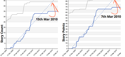 I created two charts below using data from one of Mingle’s previous releases and found them to be strikingly similar.