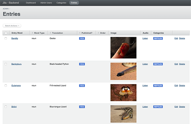 All of this content needed to come from somewhere, and we needed to make it simple enough for the language team to be able to manage without any help from the development team. We also had another requirement to make cloud-friendly choices so the language centre didn’t have to manage infrastructure. To satisfy these problem, we created a very simple web-based content management system tailored around the requirements of the app.