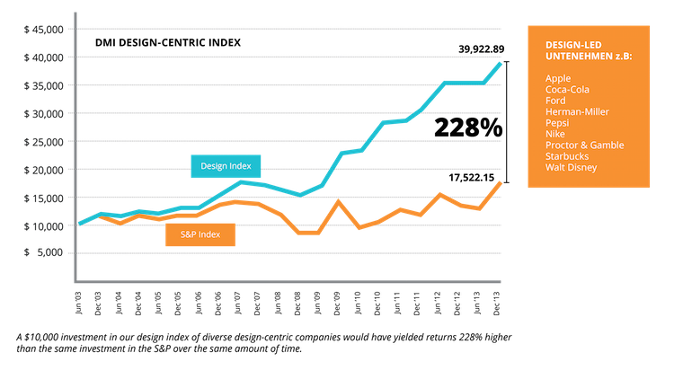 Unternehmen ziehen daraus einen messbaren Nutzen. Dies belegt unter anderem der DMI Design Value Index. Dieser Aktienindex vergleicht Unternehmen mit starken Designfokus mit Unternehmen mit schwachem oder keinem Designfokus und schneidet dabei deutlich besser als durchschnittliche Aktienindizes ab. DMI und Motiv Strategies identifizierten 15 börsennotierte Unternehmen die gewisse Designmanagementkriterien erfüllten und beobachteten ihren Börsenkurs über 10 Jahre hinweg. Hierbei schnitten diese Unternehmen überdurchschnittlich ab (siehe auch http://www.dmi.org/?DesignValue).