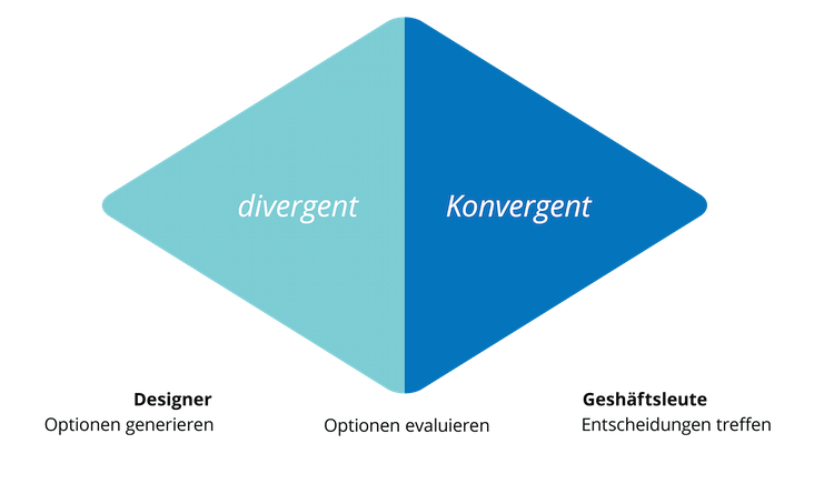 Unser Event begann mit einer kurzen Einführung und ging dann schnell in einen interaktiven Teil über. In der Diskussion wurde früh klar, dass Design neben seiner ästhetischen Funktion, als höchst methodisches Vorgehen, den Raum schafft zu divergieren um dann wieder zu konvergieren. Im Rahmen der Divergenz werden Probleme besser und manchmal neu verstanden und neue Handlungsoptionen identifiziert.