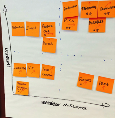 - Stakeholder map practice: This maps high interest and high influence, with the focus area being the top right quadrant. It is a traditional approach to prioritize the important users of the system.