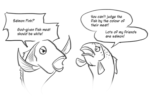 It's easy to demonize anyone you haven't had a real conversation with. For the Marketing team, red might have been disastrous on the last project when it actually boosted the competitor's sale. Salmon pink discussion would have come up had both of them talked for five minutes. Truly one of your project's huge time-sink.