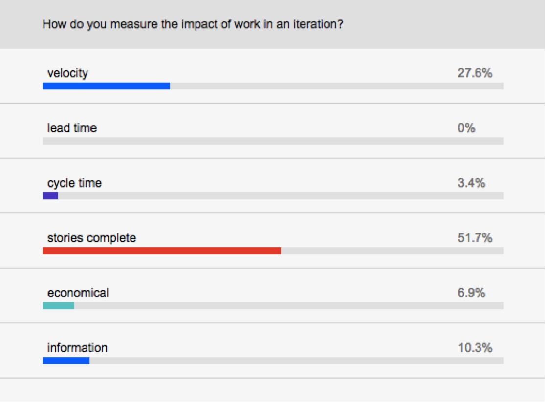 Stories complete is a vanity metric to make you feel good or get management off your back. Velocity, lead time and cycle time are process metrics. Information gained and economic value captured are outcome metrics. Velocity, lead time and cycle time tells you how well your process is working, not how effective the team has been about achieving business outcomes — bottom line impact for our efforts.