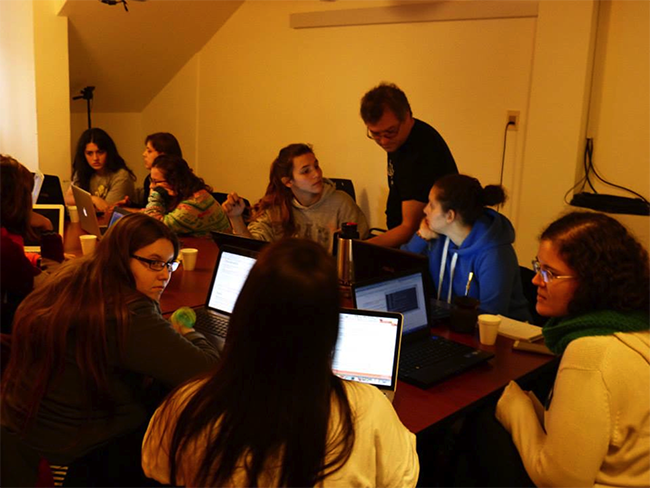 On the second day we started with an introduction of Ruby on Rails and then the girls formed groups to start working on building a web application. The attendees had different backgrounds: some of them were at high school, some were starting university or working in other areas.