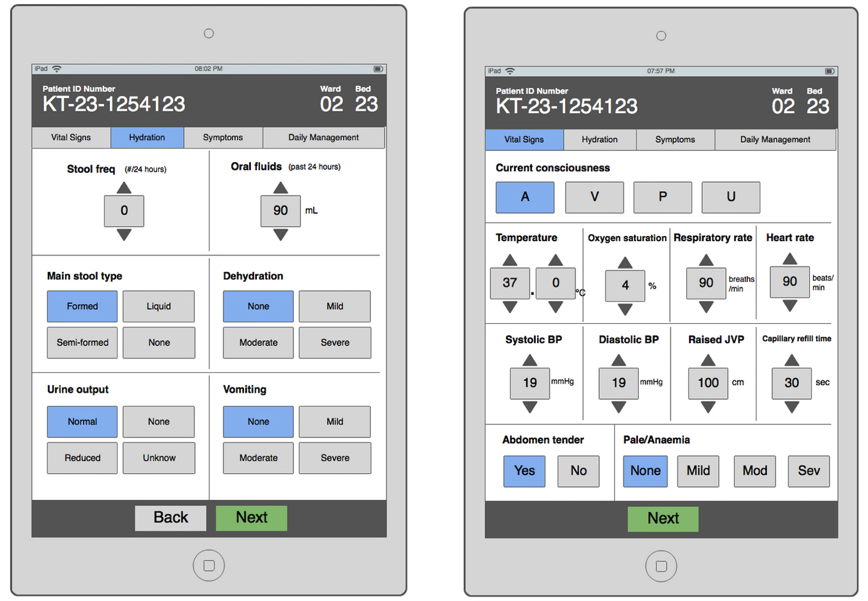 There were many needs identified by the health agents working in the affected countries. We chose to develop a solution for those identified at the NGO, Save the Children. In short, their needs related to a system that would operate on their CDC (Center for Disease Control) in Sierra Leone. Here's a video that shows the wards of the CDC, inaugurated on 5th of November. They used an implementation of OpenMRS, known as Reference Application (based on what Thoughtworks built for the Mirebalais Hospital in Haiti). However, they did not have an essential feature in this Reference Application to assist with the treatment of inpatients infected with Ebola.