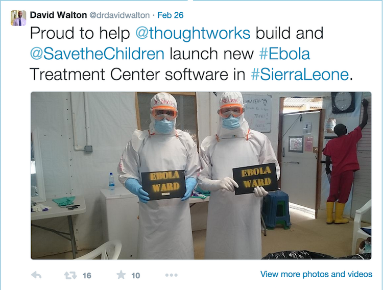 In response to the crisis, many initiatives are underway in Thoughtworks offices around the world. Thoughtworks has partnered with other organizations to create applications like Ebola Ghana Alert, mHero and Ushahidi.