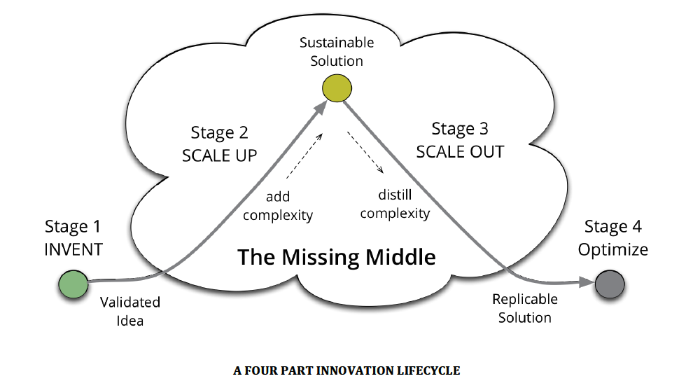 The premise of our initial paper, The Missing Middle of Innovation, was that Humanitarian innovations frequently fail to go to scale because innovation teams are in fact confronting fundamentally new problem domains. They must now Scale Up and Scale Out their programs.
