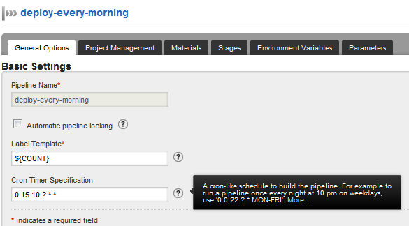 Next, you could set up a timer spec so that the pipeline schedules say every morning at 10:15am.