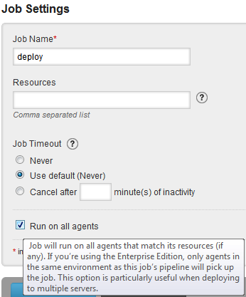 Finally, we need to consider the agents where stuff gets deployed. It is important to ring-fence the agents by defining an QA-exploratory-testing environment. It is also necessary to instruct all deployment jobs to run on all agents.