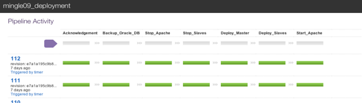 Central build-test-release space for the entire team: We dog food our Mingle by managing Mingle, Go, Twist and upcoming products in Mingle. It’s a production environment which gets a new build every day. This helps us sign-off our stories and newer features being tested by other teams to loop back feedback on our product. Below is the pipeline of our daily deployment.