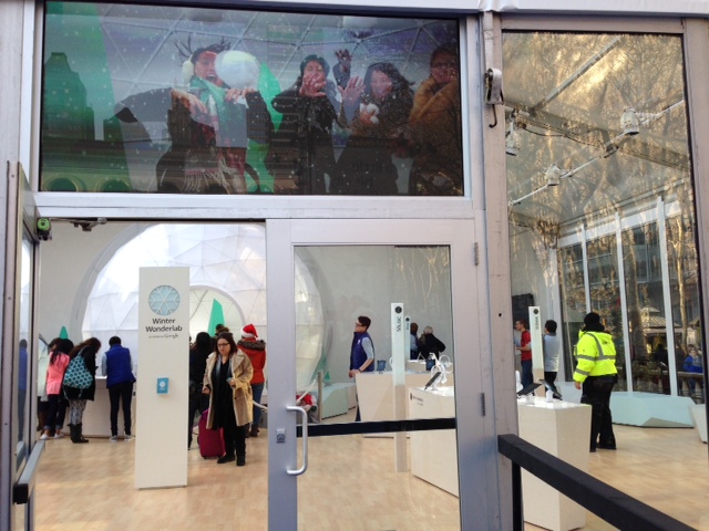 Above: Google’s Winter Wonderlab pop-up stores recently appeared in parks and shopping malls across the United States, including the above in New York City.