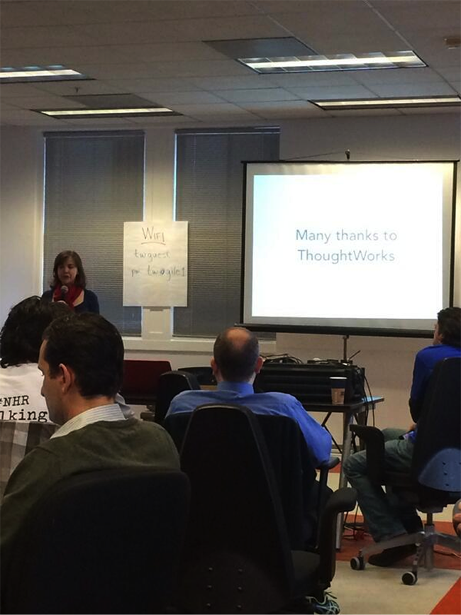 Thoughtworks sponsored the food, beverages and the prizes including a month of free coworking space for the winning teams. Thoughtworks and friends of Thoughtworks were working hard including some technologists who stayed over night to continue working on their projects. During the event, we had a team skype in from Portland to assist with coding one of the amazing new projects. We were excited at the passion, depth, and voracious appetite for creating more meaningful technology-driven solutions.