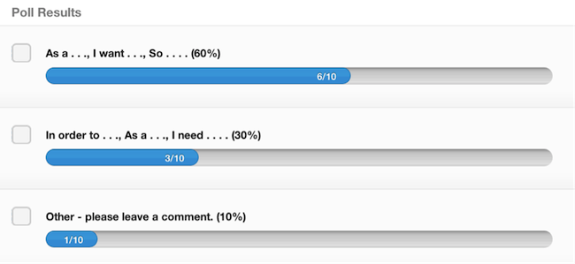 We recently held an internal poll here at Thoughtworks about how you should write user stories. The results? Highly weighted toward common agile formats:
