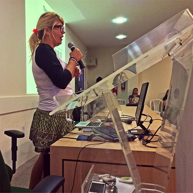 The morning was devoted to lectures and a brief presentation of the project by its mentor and creator, Pr. Dr. Claudia Ribeiro and Suzyanne Oliveira, one of the organizers. The lectures had as main objective to bring real experiences of the IT market for girls present at the event and inspire them.