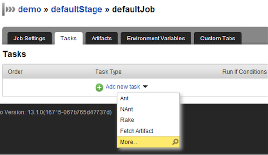 As part of release 13.1, we have added a bit of functionality to Go’s custom command. Accordingly, the task menu item has changed from ‘Custom Command’ to ‘More’.