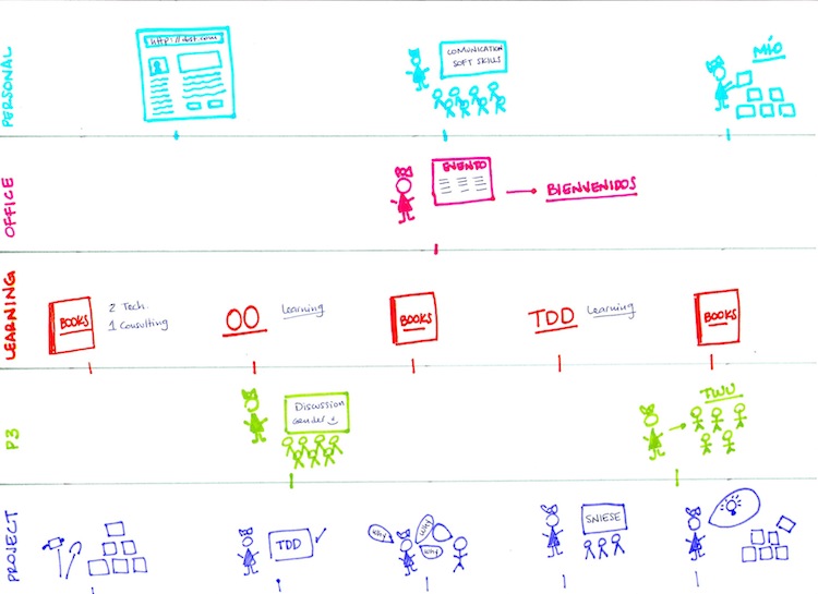 I had many ideas in mind when I put together my slideshow - the problem was that I hadn’t defined my goals. But I realised that the first step was to prioritise. I have to say that this was the most difficult part - recognising what was most important and focusing on small and measurable goals. In Thoughtworks, it is important to balance your goals between the three pillars. Something that helped me a lot was defining where I see myself in the future. The big picture allowed me to start breaking it into smaller goals and specific actions that could help me trace the path to reach those bigger goals.
