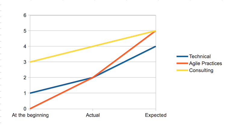 My coach suggested that I draw out all my goals on a timeline. This allowed me to balance what was most important within a given timeframe. First, I plotted where I thought I was and where I want to be. I used a measurement framework similar to the Dreyfus scale to help measure my ability and knowledge on specific skills. Once I did that, I drew my journey across the five specific areas that I wanted to focus on: personal, professional, learning, Social Change and Project Delivery. With this I was able to balance all activities and tackle all these areas, giving more importance to the ones I think I need to improve on without neglecting the others.
