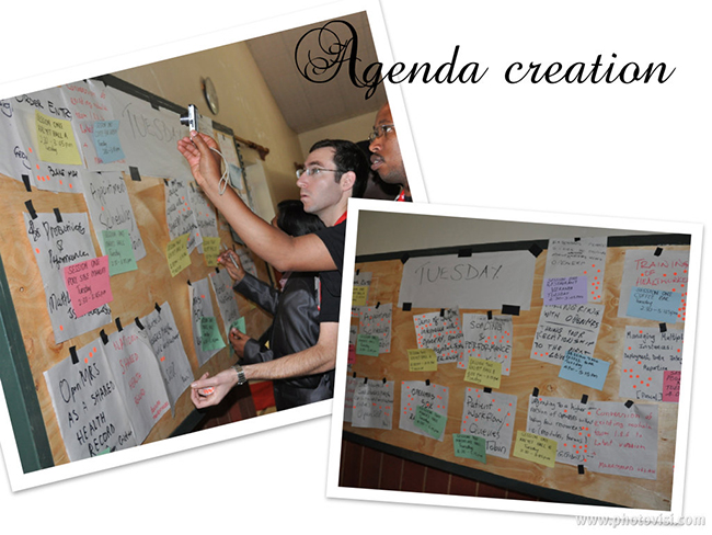 The OpenMRS Implementers meet started on Oct. 8 and was conducted in an Unconference format. Most of us were new to the Unconference format, but by the end of the 4 days, we realized how great the idea was. An Unconference doesn't have any agenda. The agenda is set as the conference progresses. So on Day-1, after the Welcome speech, a Keynote on OpenMRS Reference Application, and a recap of the awesome stuff done during the year, everyone was invited to suggest sessions that they would like to facilitate in the conference. Out of a 120+ people who came for the conference, almost 50-60 of them suggested sessions, and put them up on the board (see pictures below). And thus, the agenda was born: