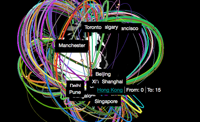 Organizers of the competition had to choose from nearly two dozen entries from Thoughtworks teams and individuals. The winning entry, Visualizing Thoughtworks’ Travel, by Senior Consultant Sandeep Aggarwal impressed the judges with its impactful visualization of Thoughtworker travel patterns and for providing a compelling means of evaluating how travel impacts Thoughtworks’ consulting business.
