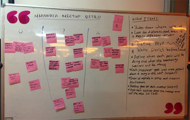 The three Thoughtworkers involved in the retrospective were worried about not entirely meeting our meetup goal because of a shortage of technical attendants and the lack of a clearly defined purpose for the meetup.