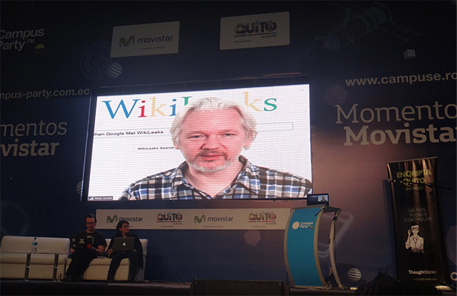 Assange habló acerca de varios temas respondiendo preguntas muy variadas, pero me gustaría resaltar dos partes de su charla: