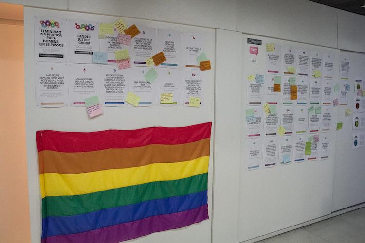 The campaign was very simple. We translated the list from English to Portuguese and designed posters with each of the suggested steps. We displayed them one by one, daily, on a prominent wall, in our Porto Alegre and Belo Horizonte offices. This way, we gave an opportunity to employees and all people visiting our offices, to learn more about feminism and how men can support women.