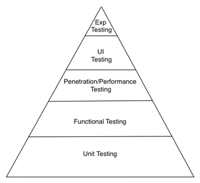 Above “UI Tests”, at the apex of the pyramid, we find “Exploratory Testing”, where team members perform unscripted tests to find corners of functionality not covered by other tests. Successful ones are then redistributed down to the lower tiers as formally scripted tests. Since these are unscripted, we’ll not cover them further here.