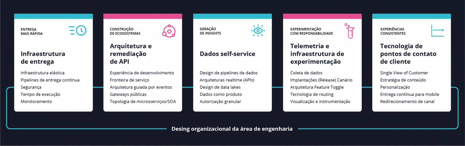 - Estabelecer um mecanismo para experimentação para que você se conecte rapidamente aos serviços e APIs corretos e os teste no mercado para obter aprendizados rápidos.
